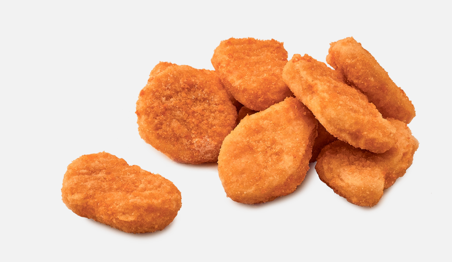 Кусочки нежного куриного мяса в панировке с добавлением сухарей, что делает их особенно хрустящими. Наггетсы предварительно термически обработаны, поэтому их достаточно прогреть и довести до хрустящей корочки в духовом шкафу, на сковороде или обжарить во фритюре.